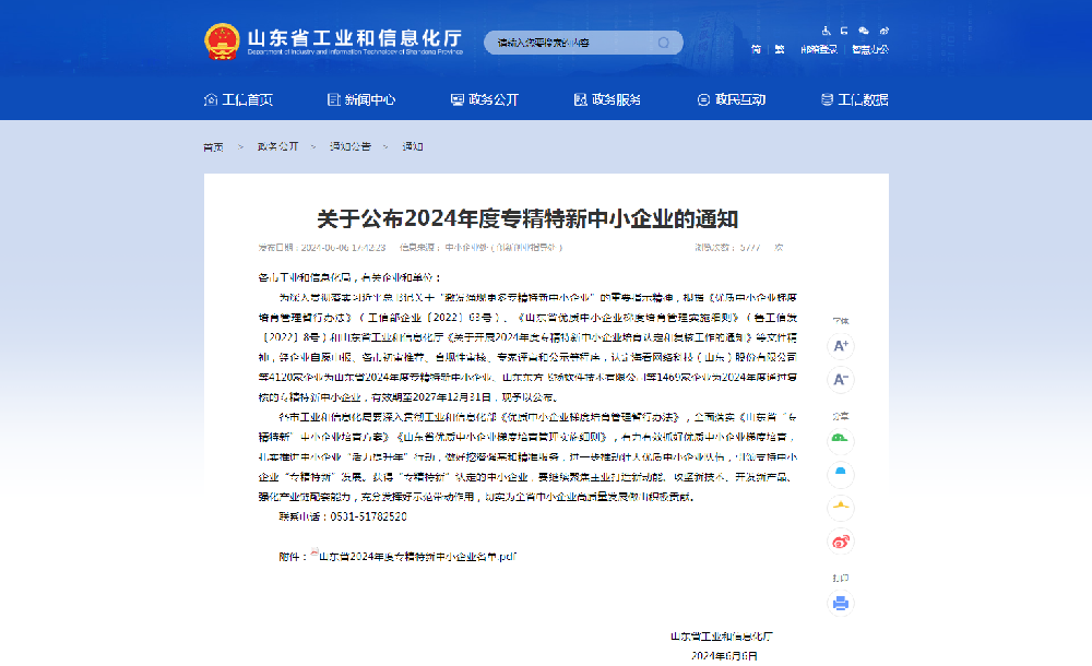 近日,山东省工业和信息化厅公布了2024年度专精特新中小企业名单,2026·美加墨世界杯(FIFA World Cup)官网入口|welcome 成功入选。