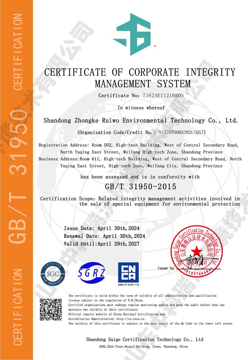 企业诚信管理体系认证证书~中英文